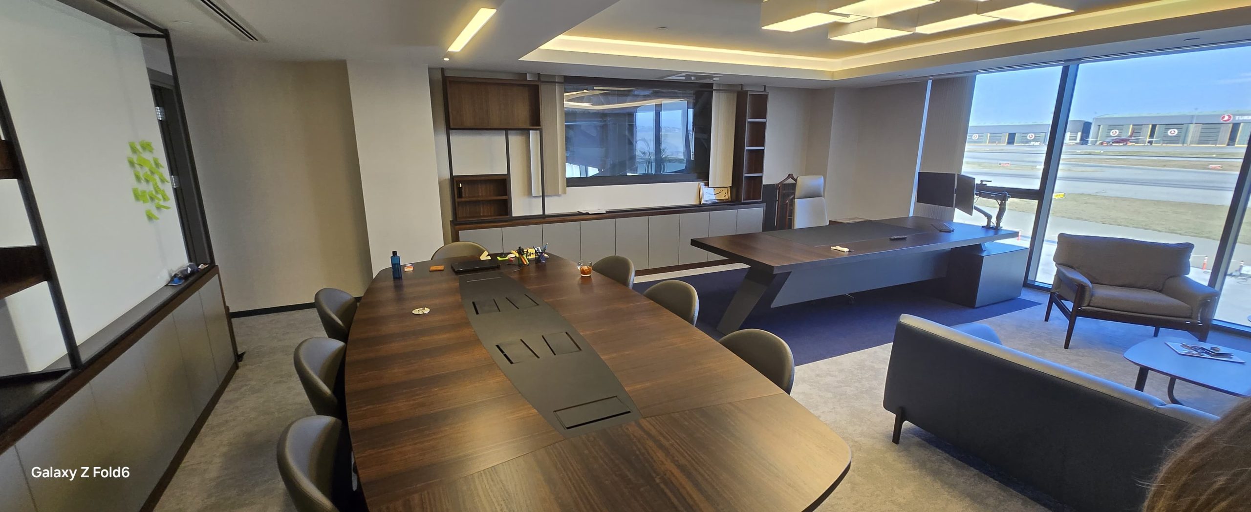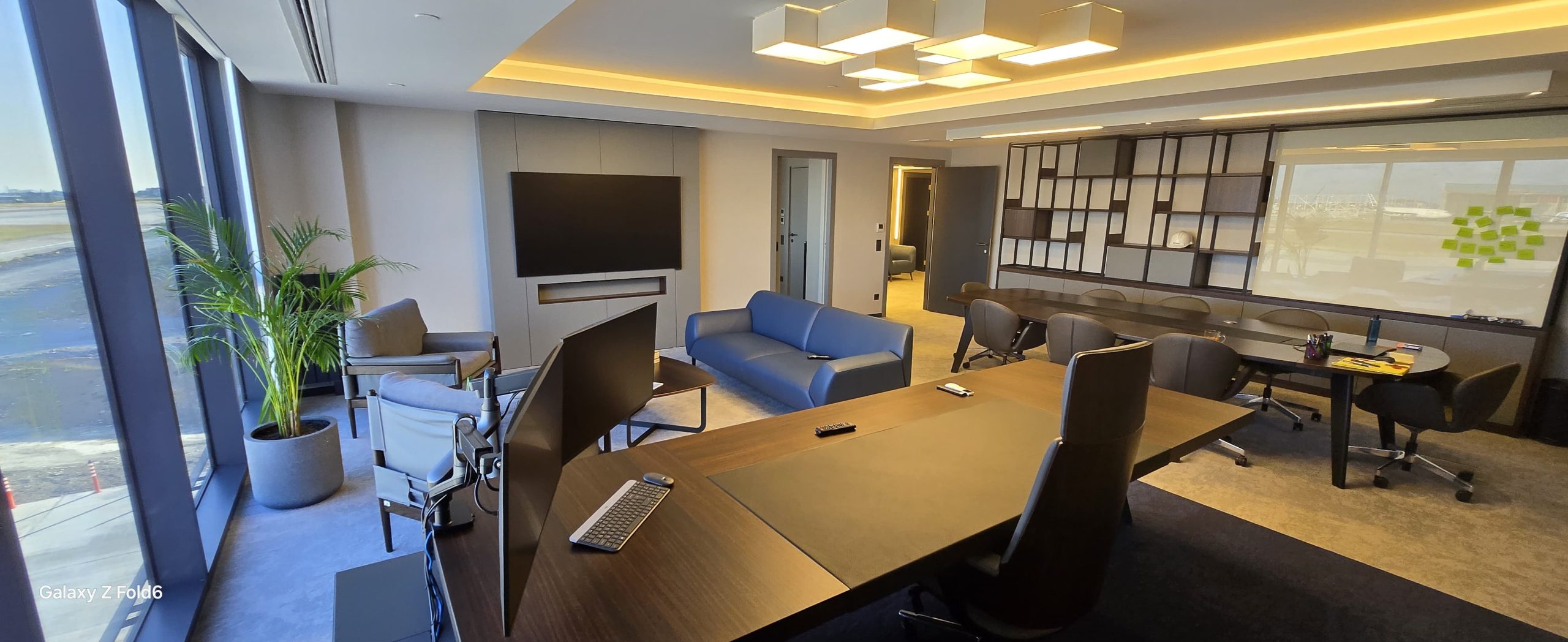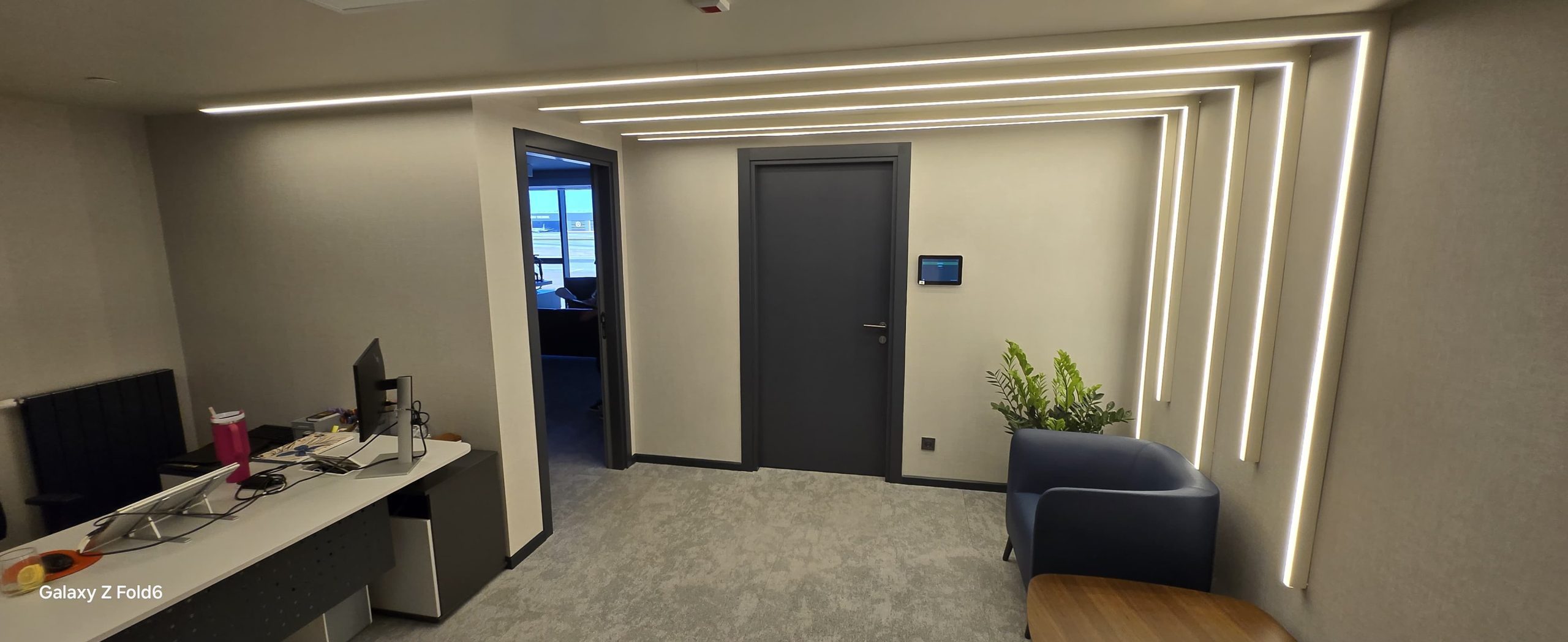 SAW Airport’in apron alanında; 5500 M2 Ofis ve 10.000 m2 Hangar için istenen bu fit-out projesinde güvenlik ve isg şartlarından ödün vermeden tasarımı şıklaştıran uygulama çözümleri sunduk.Executive odalar ve vip lounge mermer duvarlardan, toplantı odaları için akustik tavan uygulamalarına, uzun ömürlü akrilik banko ve mobilya içerisine gizli ışık detayları ile tasarımın hayata geçmesi için mimari bilgimizle emek verdik. Hijyen sağlayan boyalı cam cubicle uygulamaları , yönetim alanında prestijli ve de ayrıca açık ofis alanlarında; eğlenceli, renkli ve canlı mimari detaylar ile çalışanlara deneyimsel bir ofis yaşamı sağlayan SAW Airport Redstar Aviation Office + Hangar projesini hayata geçirdik…